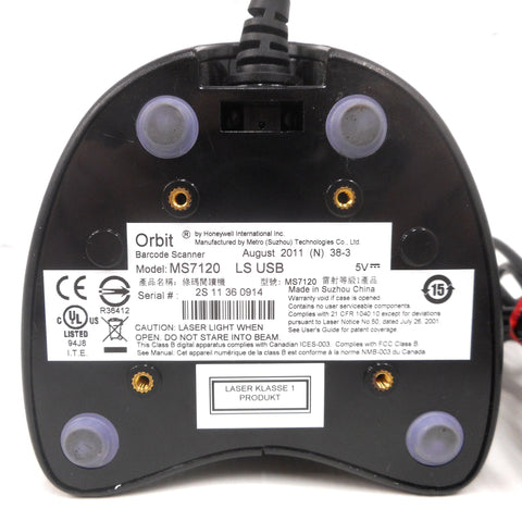 Excellent working condition, very clean, ready to use. Orbit Model MS7120 LS USB by Honeywell. Original 9 feet long USB cable marked Honeywell. Serial 2S 11 36 0914. Acquired from a closing high-end store in Montreal. See our store for more high quality used equipment for your boutique or home office.