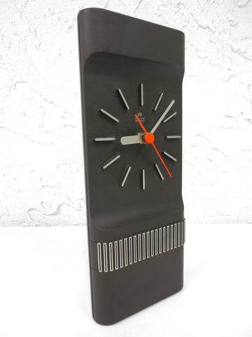 Excellent condition, signed Aachen Germany Design, fully functional Quartz mechanism with an AA battery. Cool Mid-Century Modern design, measures 4 1/2 X 10 3/4 X 1 3/8, rectangle with rounded corners. Great centerpiece for your office, kitchen or living room. Integrated wall mount, easy to hang on your wall.