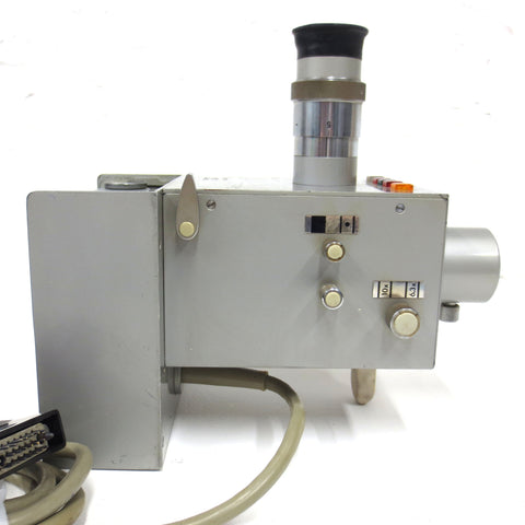 Excellent condition, fully functional, 35mm Zetopa microscope camera signed Reichert, Austria, model 52 248. Removable camera in mint condition, 35mm film inside, 20-pin Harting connector (3 rows). Lens in excellent condition, metal body has multiple controls and light indicators. Measures 9 3/8 x 5 1/4 x 8 1/4 inches and weighs 5 pounds.