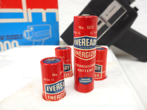 Never used, functional, box and factory Eveready batteries included. This movie camera is in mint condition inside out. We left the original batteries inside to preserve them however we will provide new ones.