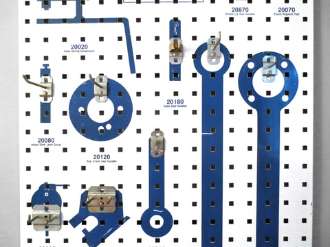 Clean and complete with its 16 original tool hooks. Measures 24 X 12 inches. Has the official Maserati emblem and is marked "Toolboard No. 1". Original paint, no dents. Easy to hang in your garage or mancave. Hooks can be used to display other type of tools. This tool board used to display the following Maserati service tools: Front Crank Gear Remover, Double Lip seal Installer Clutch Alignment Tools, Valve Spring Compressor, Valve Seal Installer, Intake Shim Level Gauge, Rear Crank Seal Installer, Valve Shim Gauge, AC Magnet Remover, Cam Pulley Retainer, Pinion Seal Retainer and Rear Hub Retainer.