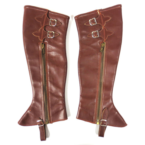 2 Vintage Pairs of Leather Spats Gaiters Leggings, Buckle & Zipper, Horse Riding