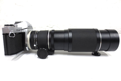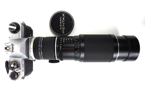 Zoom in mint condition, very clean and ready to use. Has an M42 screw mount and includes a Seimar Auto Tele Converter 2X to fit Pentax-K mount also. Zoom is a Asahi Pentax Super Takumar f/4.5 70-150mm, serial 3520423. Also included: