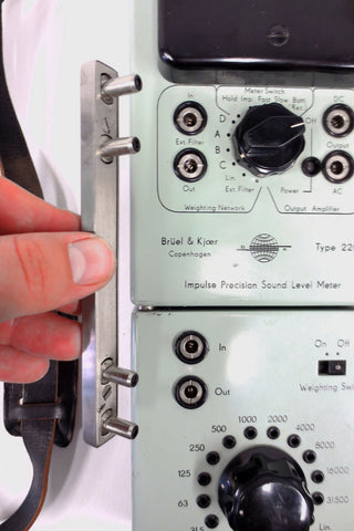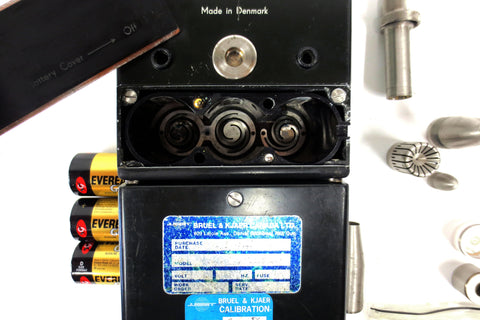 Signed Brüel & Kjaer, made in Denmark, combines both the Impulse Precision Sound Level Meter type 2204 (top unit) and the Octave Filter Set type 1613. Original tags, serial 35536. High quality sound equipment from the 1960's, still used as a microphone, meter and filter box by sound professionals. All parts are original, clean, easy to disassemble, light wear only. Lot is sold as is and may require repairs and calibration to be fully functional. From the estate of a private collector in Montreal (Quebec, Canada). Includes all the following Brüel & Kjaer accessories and adapters: